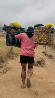 | Ilustrasi: Salah satu porter Rinjani saat memikul logistik naik ke Gunung Rinjani, (Foto: Istimewa/MP). |